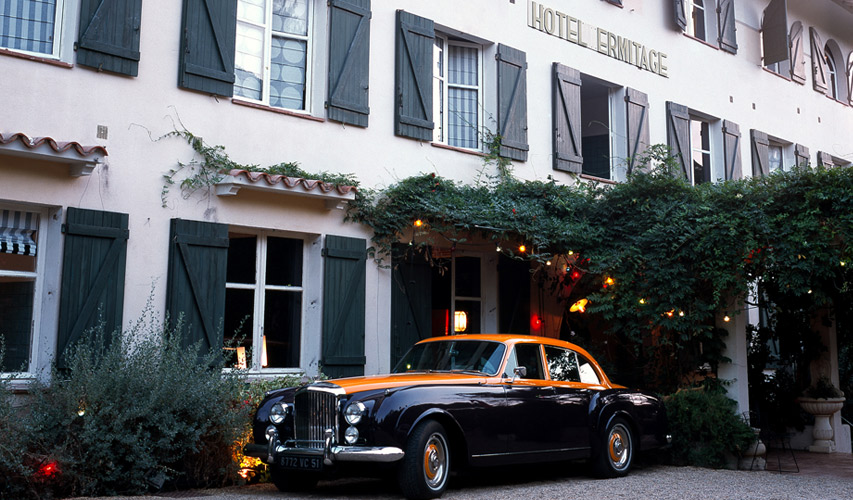 In complete gap with the big luxury hotels from Saint-Tropez, the Café Hôtel Ermitage is an atypical place conjugating art, whim and vintage furniture. The hotel is furnished with rare vintage design furniture from Mathieu Matégot, Jean Prouvé and Ettore Sottsass.
